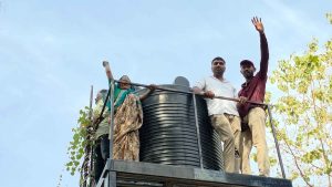 याबाबत सविस्तर वृत्त असेंकी मनमाड नजीक असलेल्या मौजे अनकवाडे आणि मौजे सटाणा येथील शेतजमिनींवर प्रशासनाकडून एमआयडीसीचा शेरा मारण्यात आला आहे. यामुळे शेतकऱ्यांना त्यांच्या हक्काच्या जमिनीवर कोणतेही व्यवहार करता येत नाहीत किंवा कर्ज काढताना अडचणी येत आहेत. हा शेरा अत्यंत चुकीच्या पद्धतीने आणि शेतकऱ्यांना विश्वासात न घेता लावण्यात आल्याचा आरोप आंदोलकांनी केला आहे.विशेष म्हनजे आशा अनेक नोंदी आहेत ज्या वर्षानुवर्षे पासुन प्रलंबित आहेत मात्र महसूल विभागाने त्या अद्यापही लावल्या नाहीत मात्र आमची इच्छा नसतांना आणि आम्हाला कोणत्याही पूर्वसूचना न देता आमच्या सात बारा उताऱ्यावर त्यांनी इतर हक्कमध्ये MIDC ची नोंद टाकण्यात आली आहे. या घटनेचा आम्ही निषेध केला असुन भविष्यात आमची इच्छा नसताना आमची एक इंचही जागा घेऊ देणार नाही वेळ पडली तर आम्ही सामूहिक आत्मदहन करू असा इशारा शेतकऱ्यांनी दिला आहे. प्रांत अधिकारी उपलब्ध नसल्याने संतप्त शेतकरी बांधवांनी शोले स्टाईल आंदोलन करत पाण्याच्या टाकीवर चढुन आंदोलन केले व भविष्यात जर आमच्या शेतीतील एक इंच जागाही घेतली तर आम्ही सामूहिक आत्मदहन करू असा इशारा आंदोलन कर्त्यांनी दिला.लोकशाही धडक मोर्चाचे अध्यक्ष शेखर पगार पी आर निळे,अनिल गुंदेचा, निलेश चुणूके,शौकत शेख,प्रशांत कातकडे,कल्याण माकूने,शामराव शिंदे ,जयवंत जाधव यांच्यासह शंभर पेक्षा जास्त शेतकऱ्यांनी या आंदोलनात सहभाग घेतला.