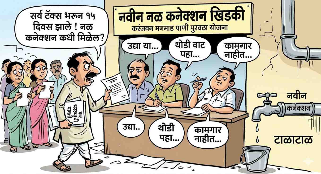 मनमाड पालिकेचा सावळा गोंधळ: नळपट्टी, घरपट्टी भरूनही नागरिक नवीन नळ कनेक्शनपासून वंचित; ठेकेदार आणि कर्मचाऱ्यांकडून टाळाटाळ